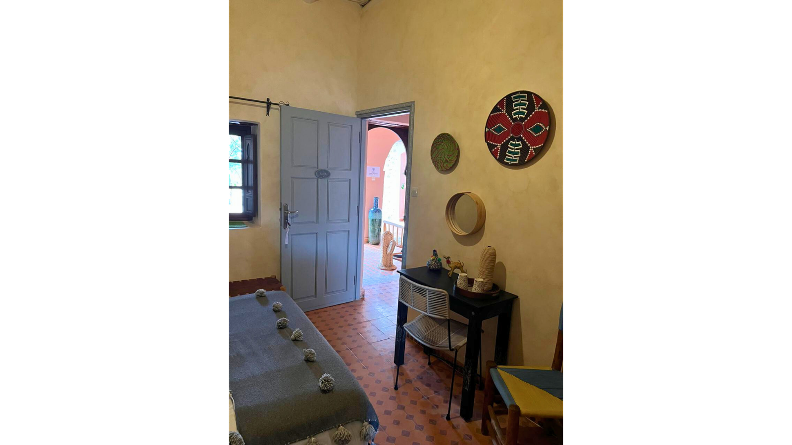 La décoration met en valeur les matériaux traditionnels et le mobilier artisanal, dans une atmosphère chaleureuse et authentique. Certaines chambres s’ouvrent sur le jardin ou les espaces extérieurs, parfaits pour profiter de la sérénité de la campagne environnante.