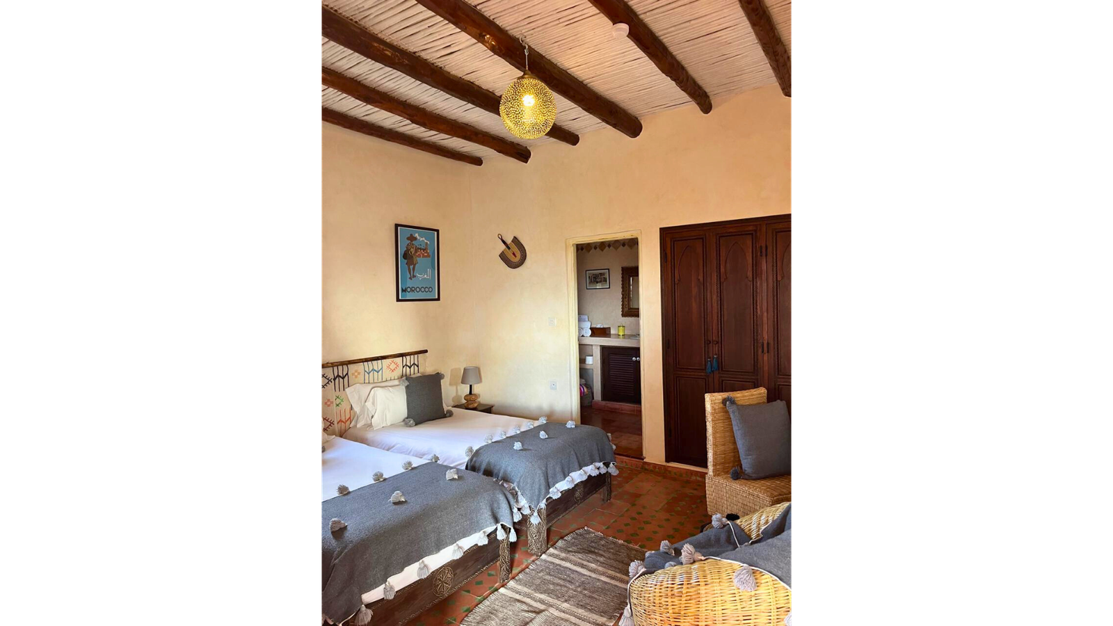 Chaque chambre du Riad Sanam est pensée comme un cocon alliant confort moderne et charme berbère.